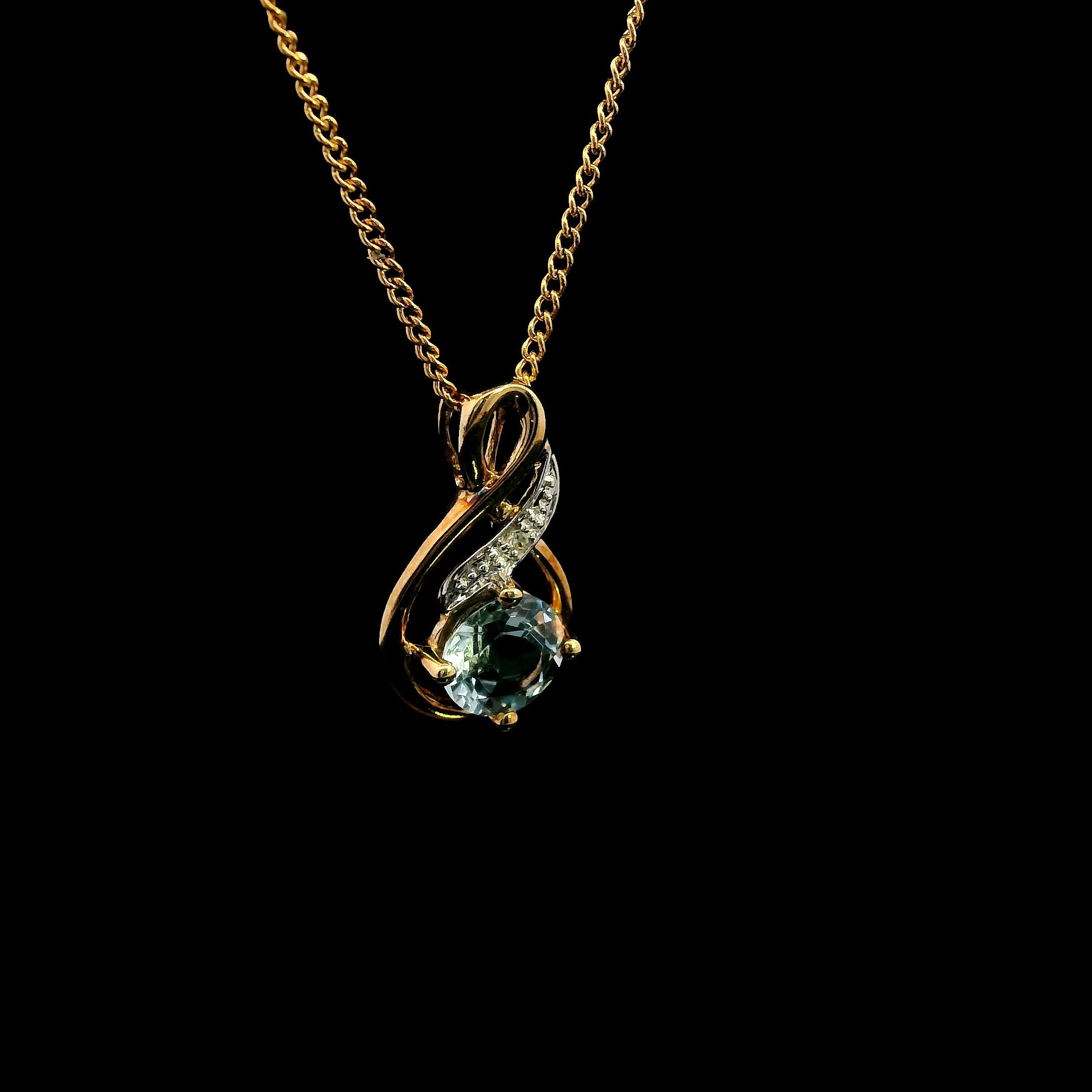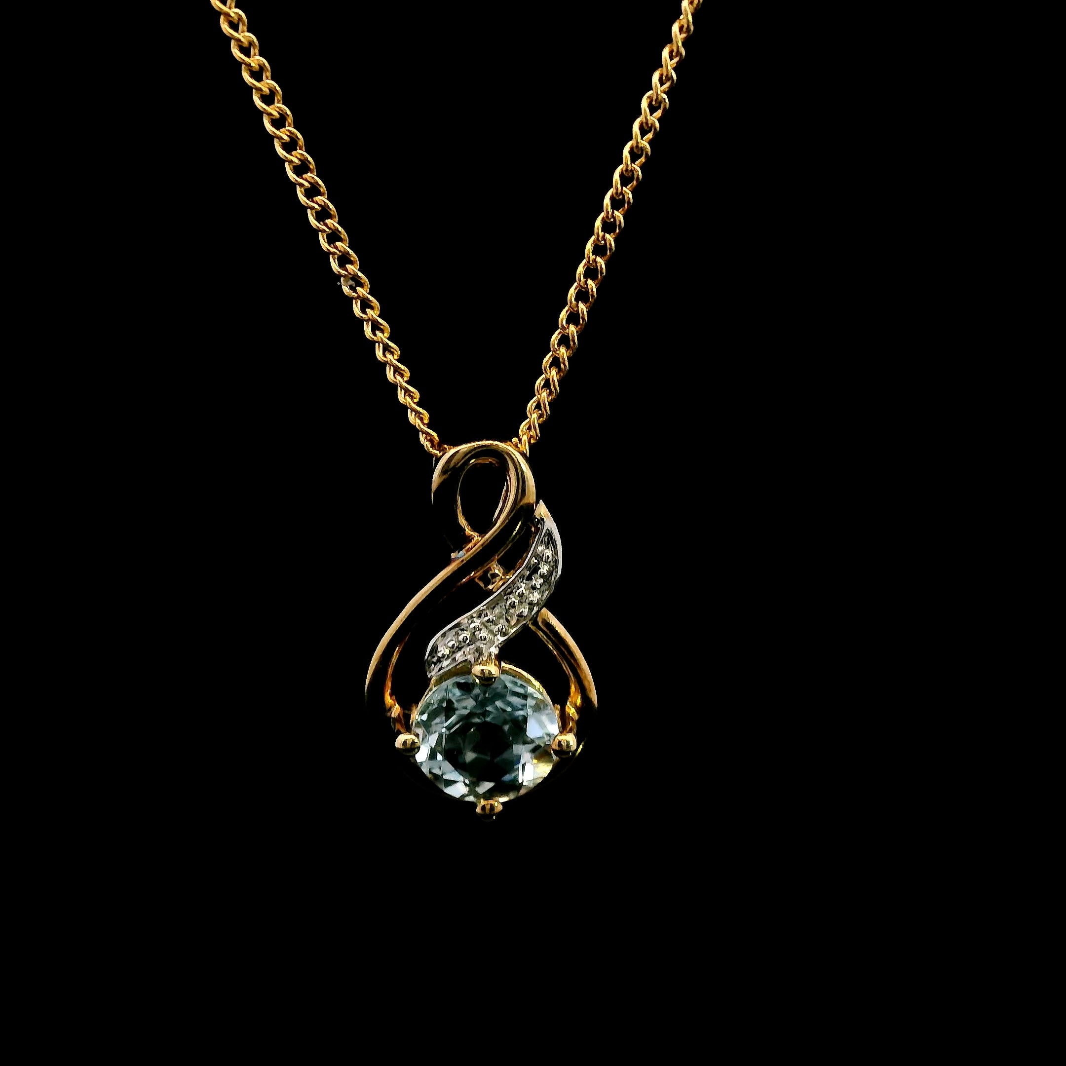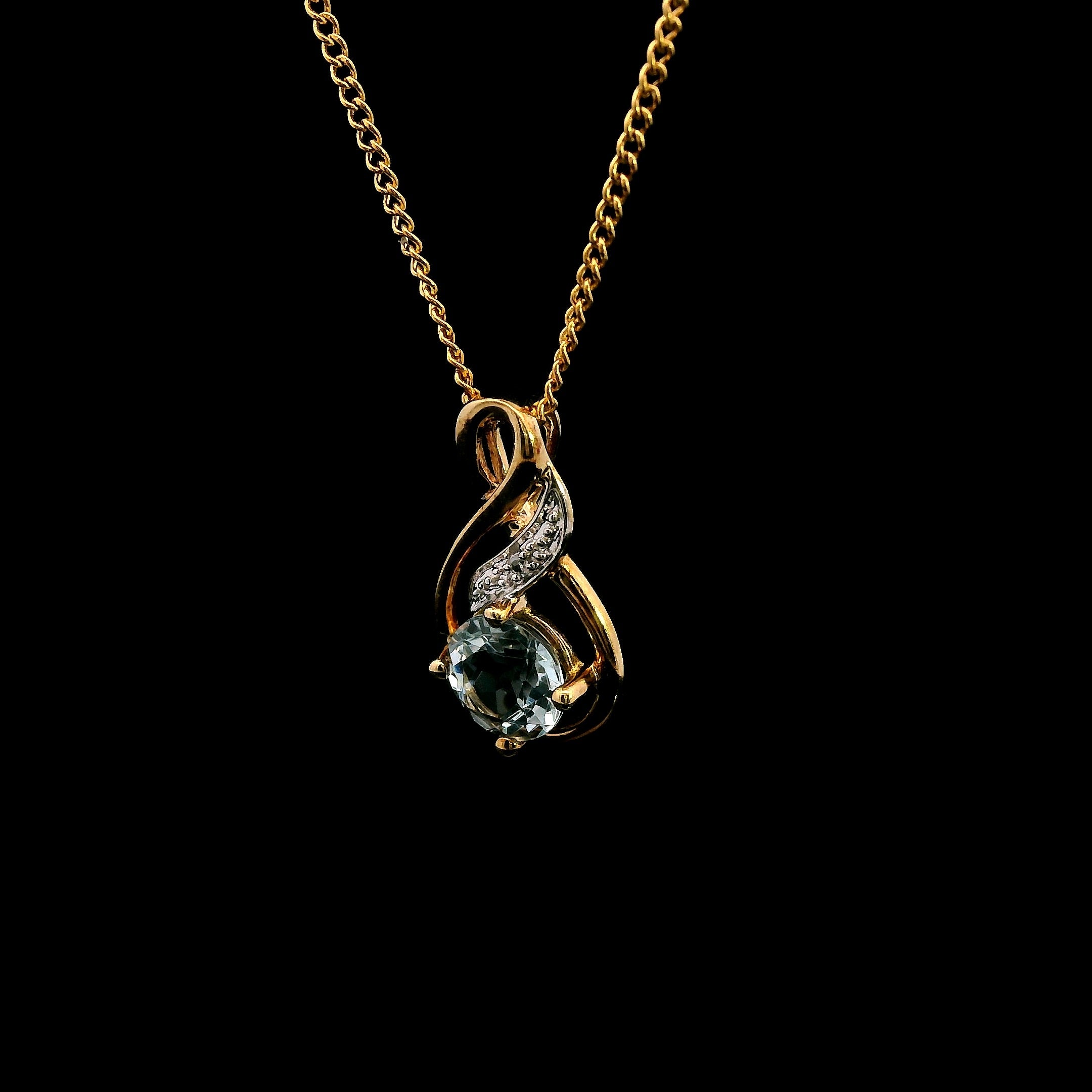 Delicate 9ct Yellow Gold Aquamarine & Diamond Pendant β Timeless Elegance