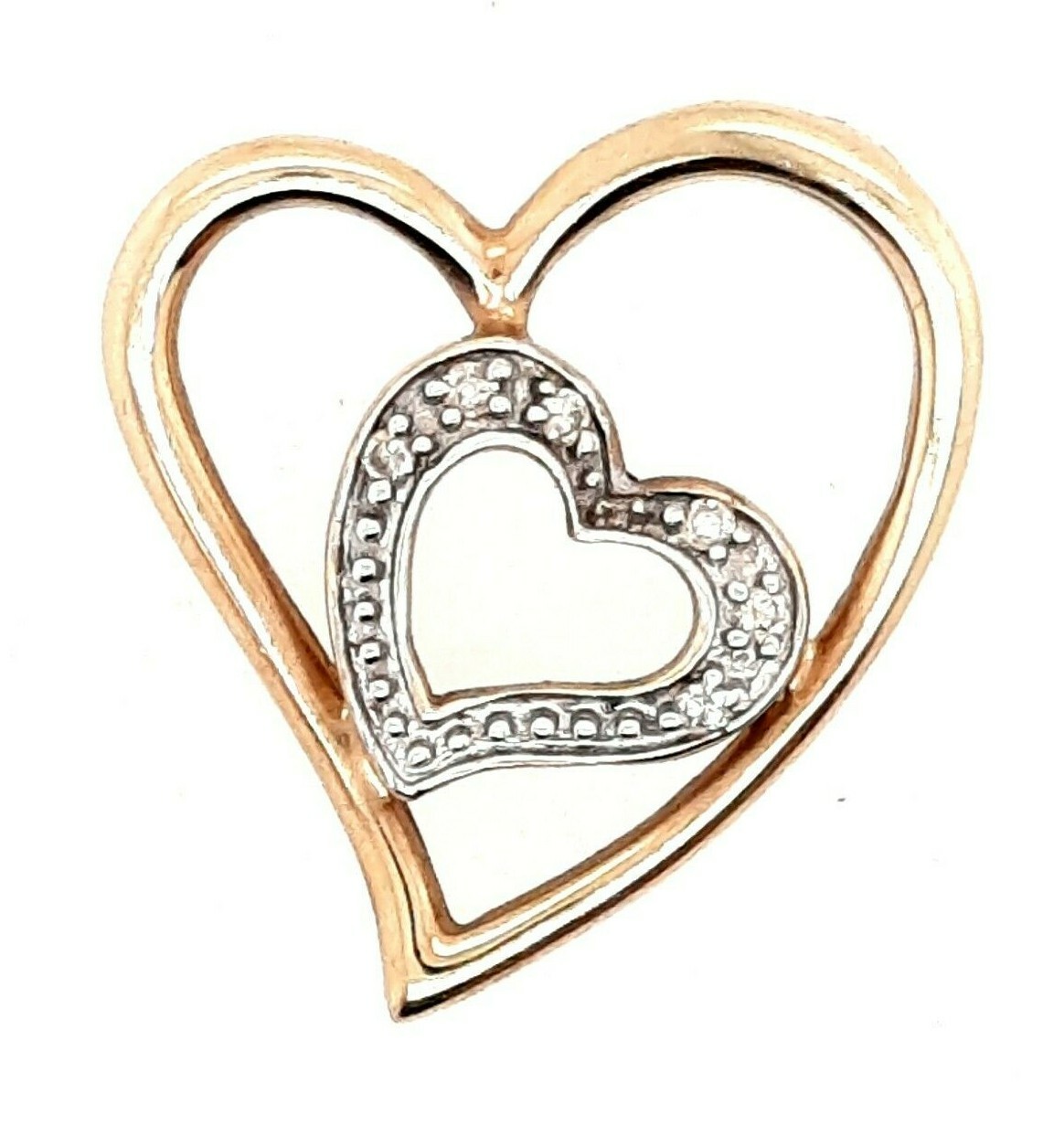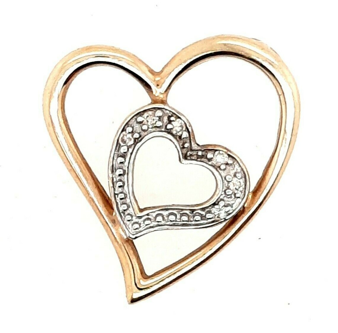 A beautiful 9ct yellow gold pendant featuring a centre heart set with 6 Diamonds and framed in a larger heart surround.
