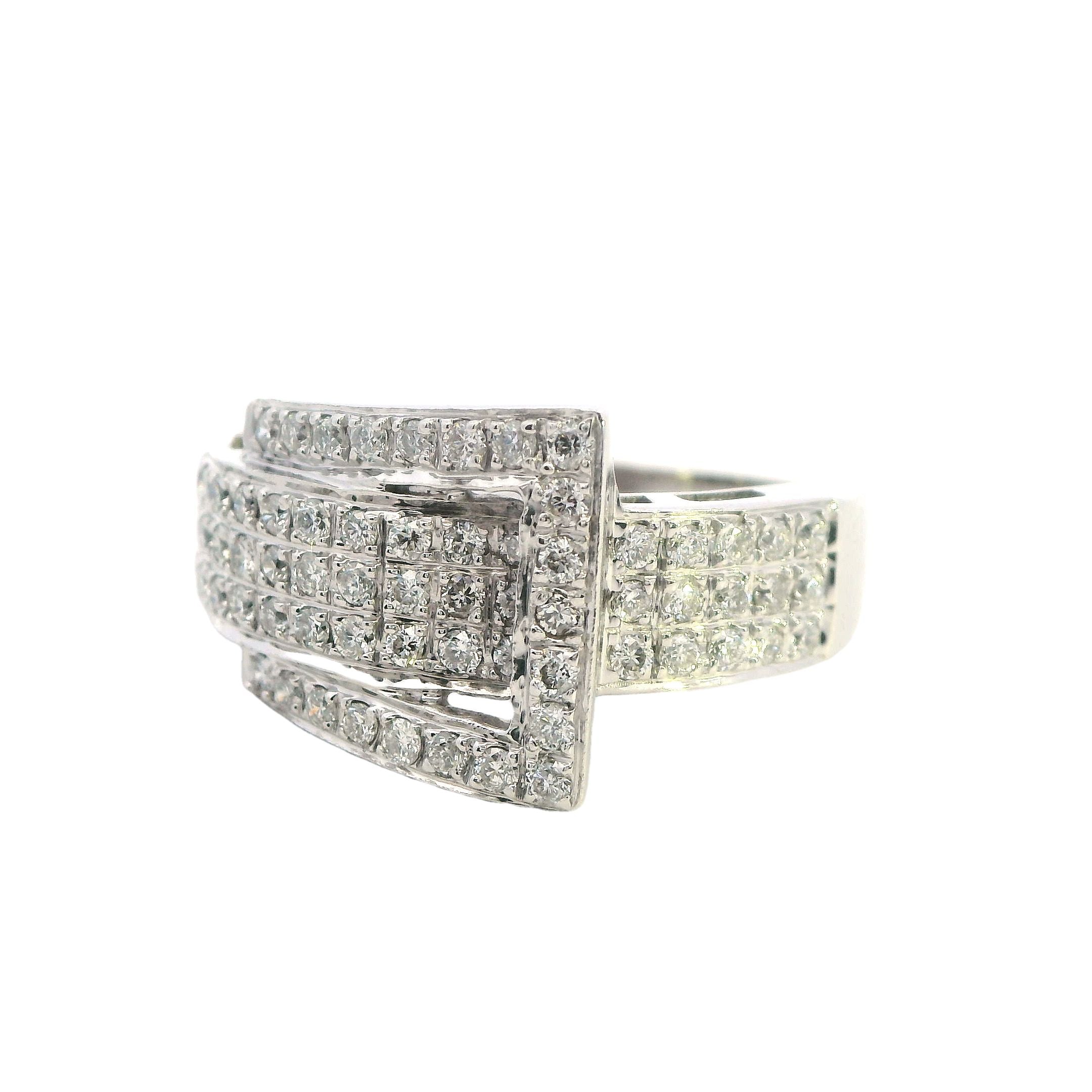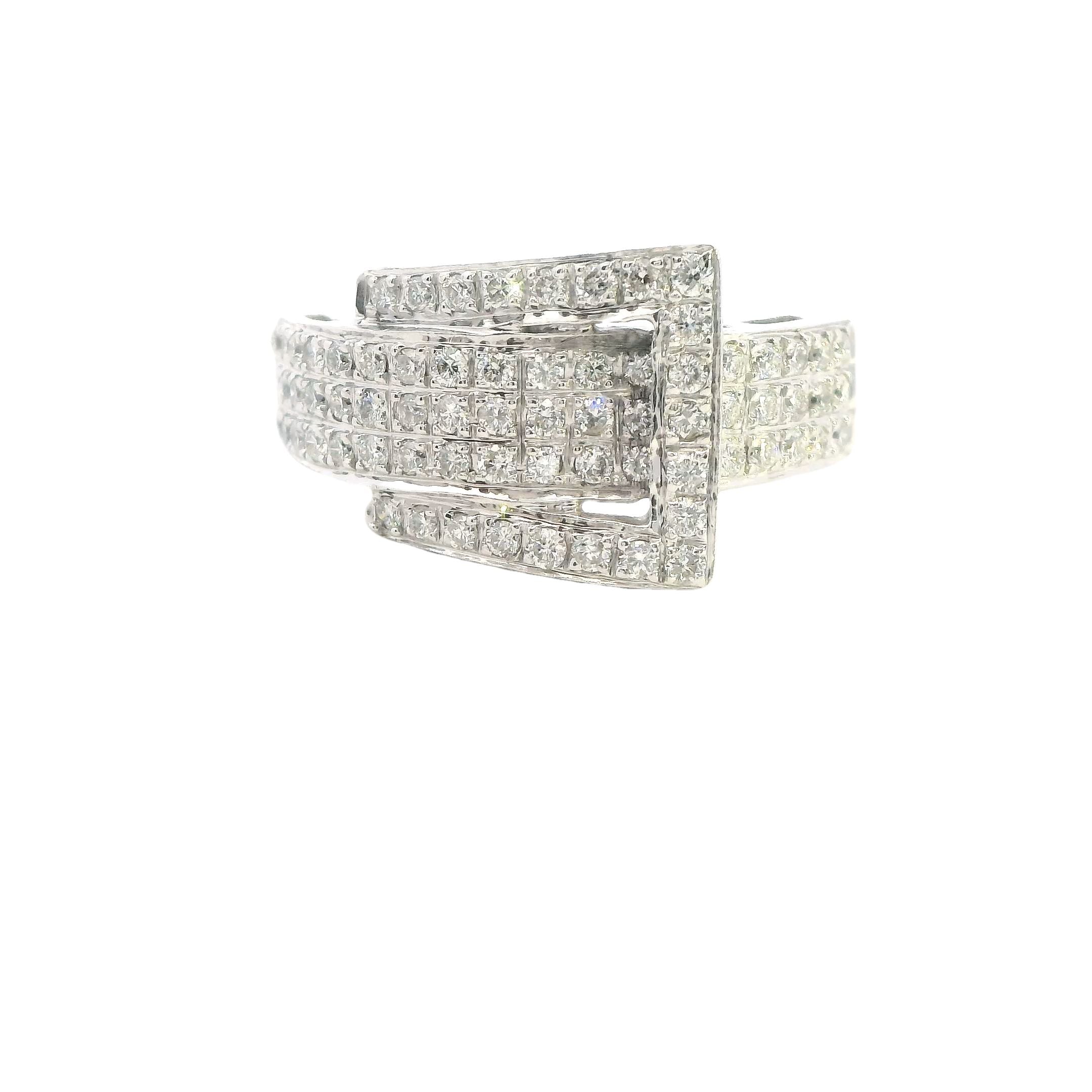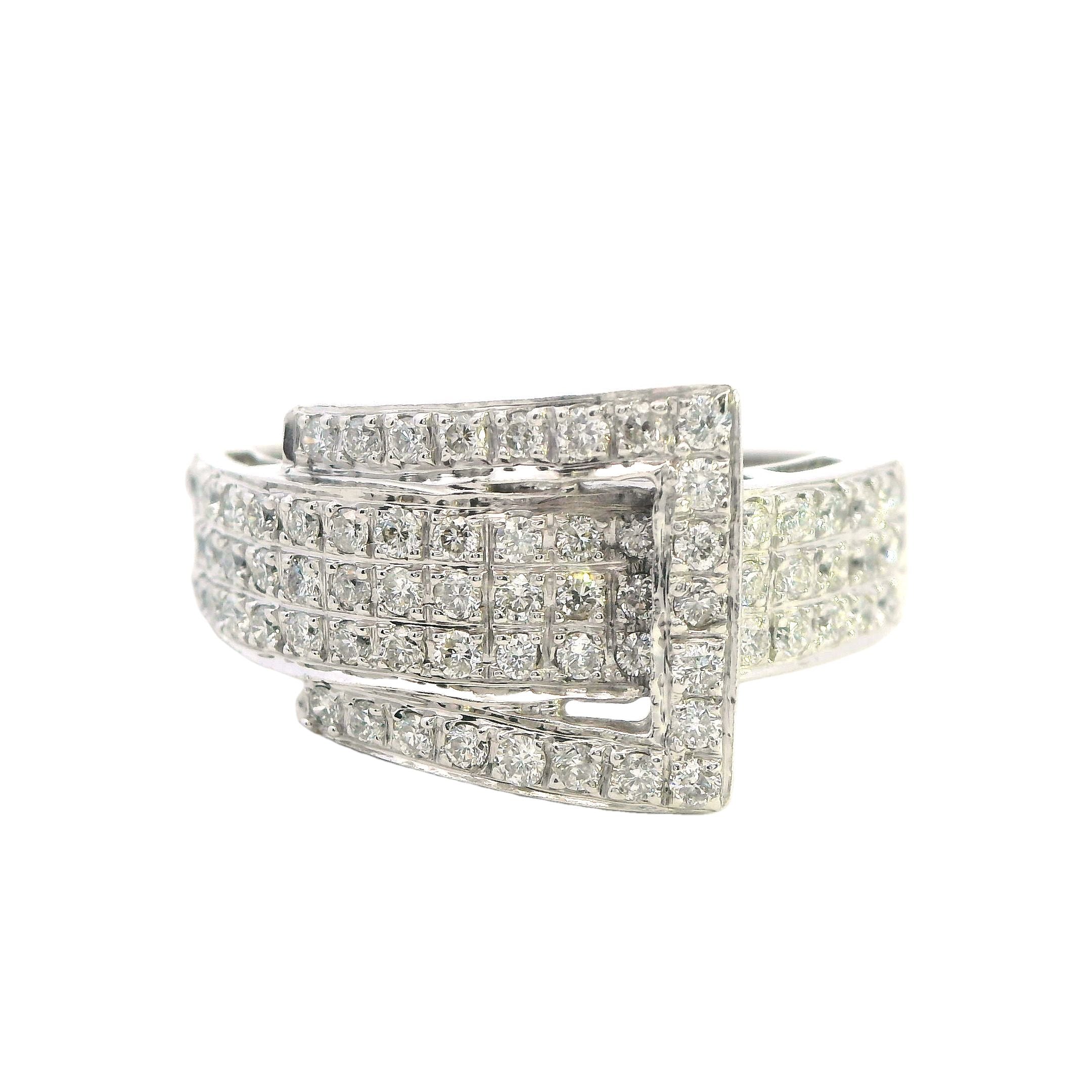 Elegant 10ct White Gold Diamond Set Buckle Ring – 1.00ct Brilliant Cut Diamonds