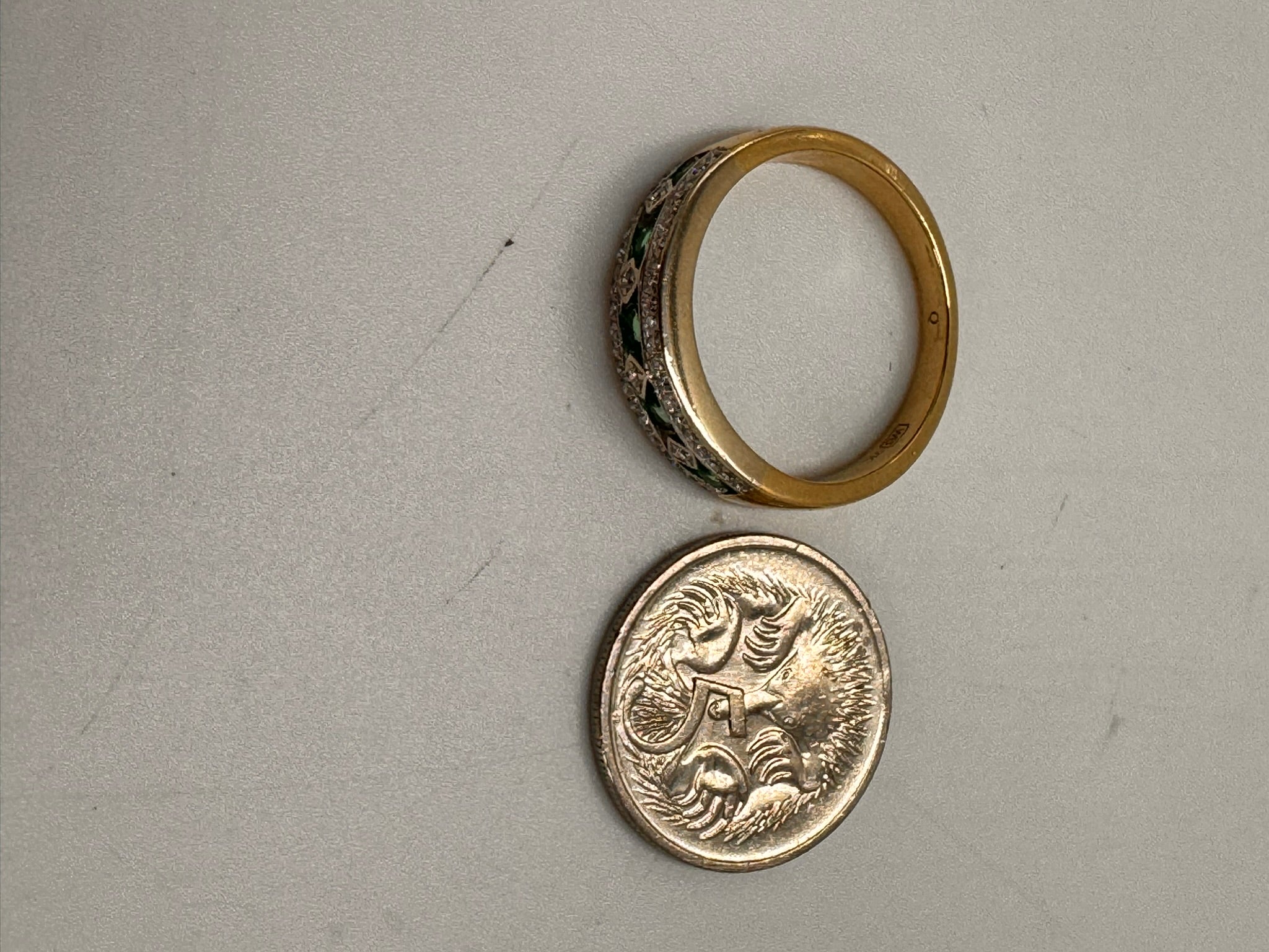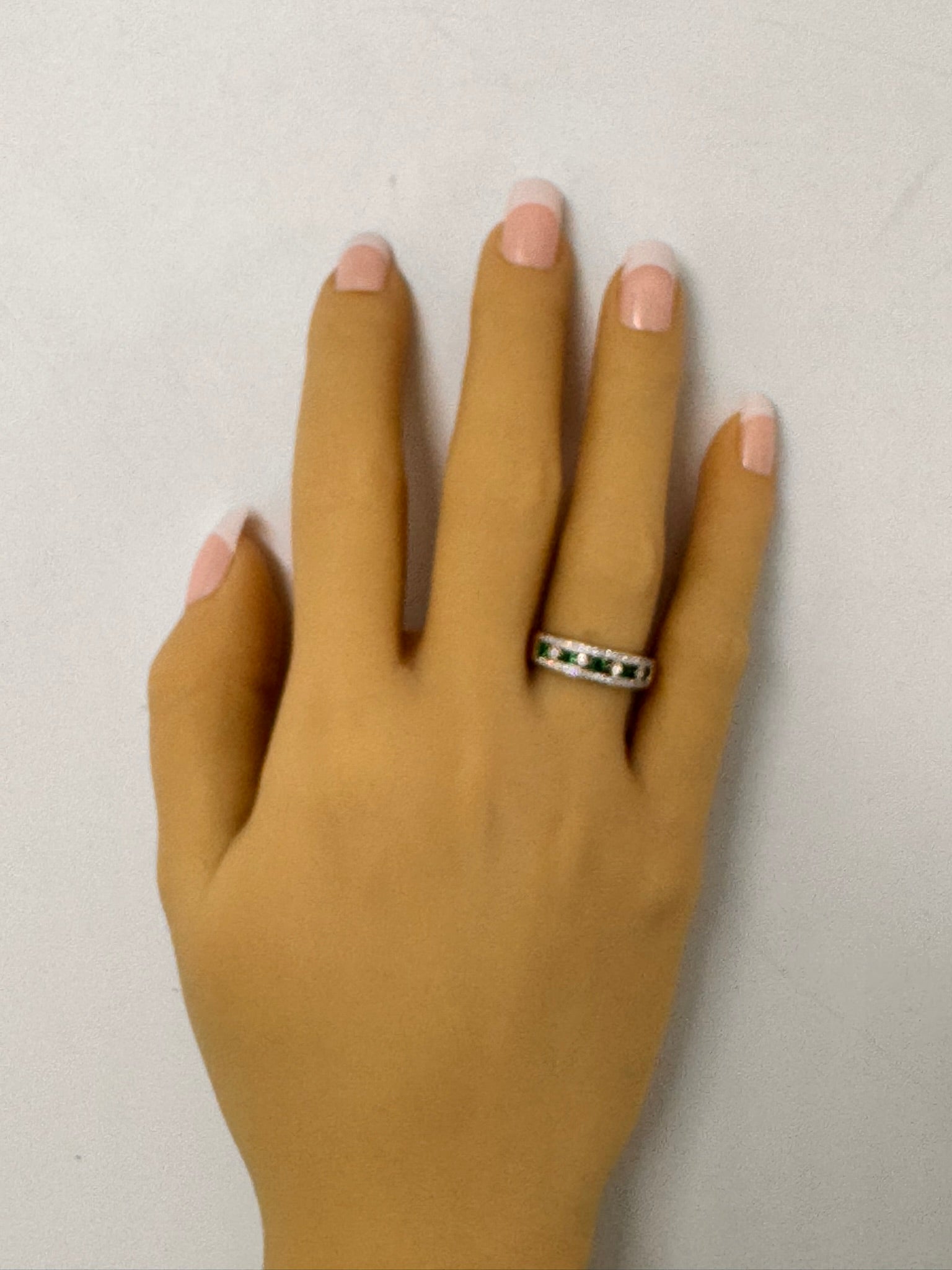 ThisΒ emerald and diamond ringΒ is anΒ exquisite statement piece, perfect forΒ special occasions, anniversaries, or a meaningful gift. While one diamond has a minor chip, this does not take away from the beauty and elegance of the ringβit simply adds to its story and charm.
