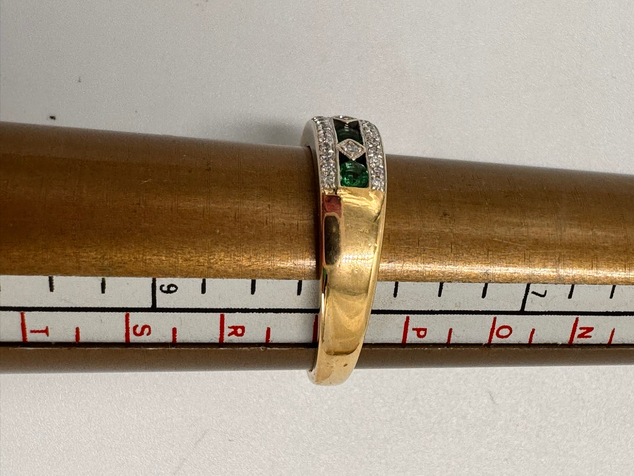 Elegant 9ct Yellow & White Gold Emerald & Diamond Ring β A Stunning Piece with Character