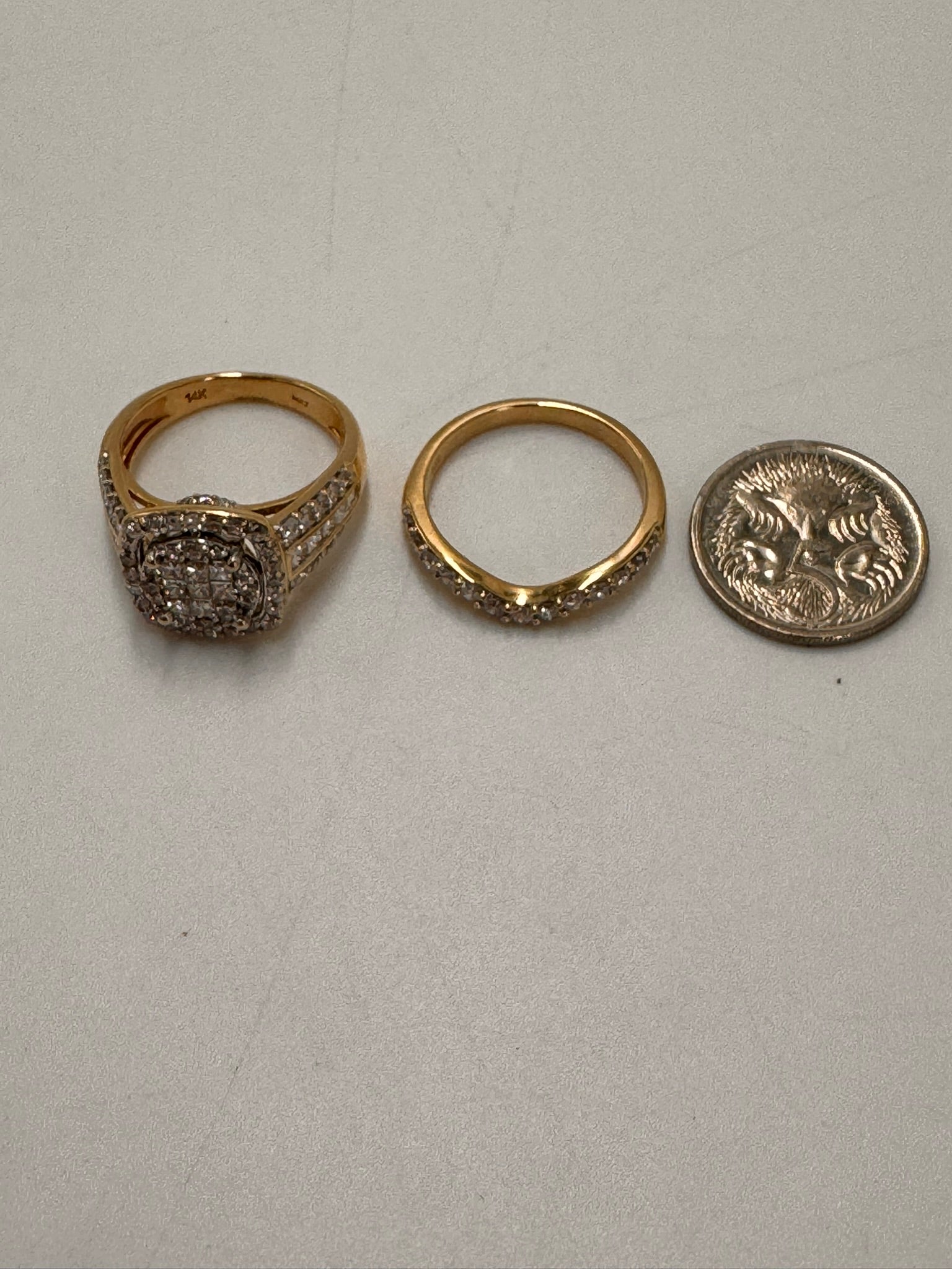 Exquisite 14ct Yellow Gold 94-Stone Diamond Engagement & Wedding Ring Set – Size US 7 / UK/AU O