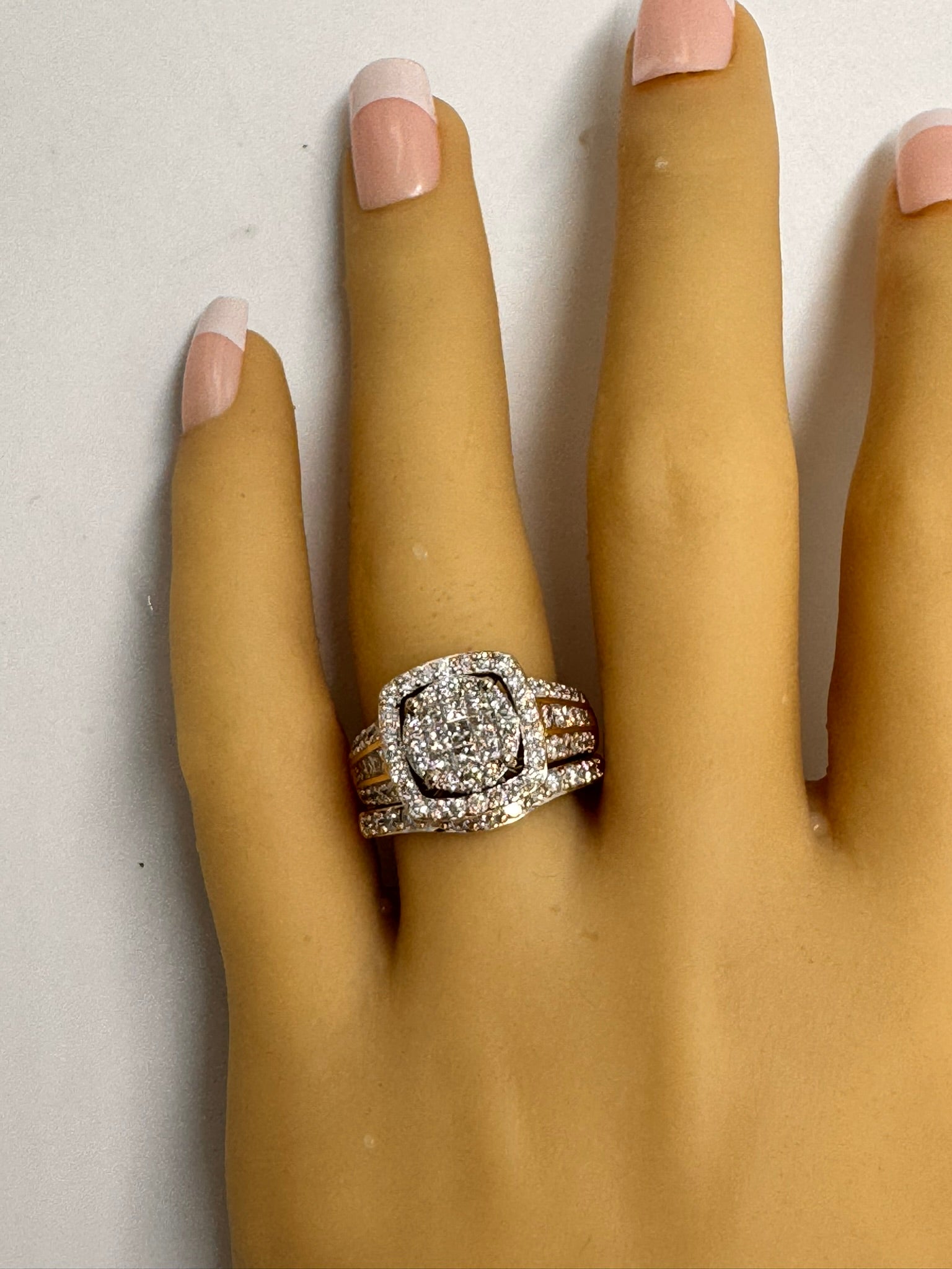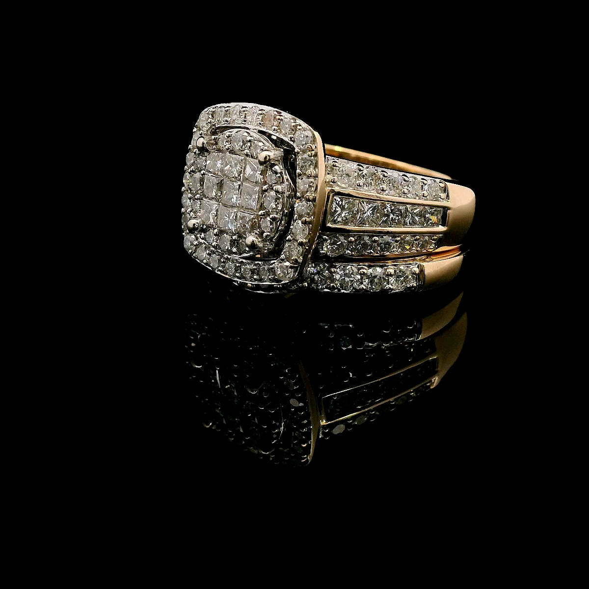 Exquisite 14ct Yellow Gold 94-Stone Diamond Engagement & Wedding Ring Set