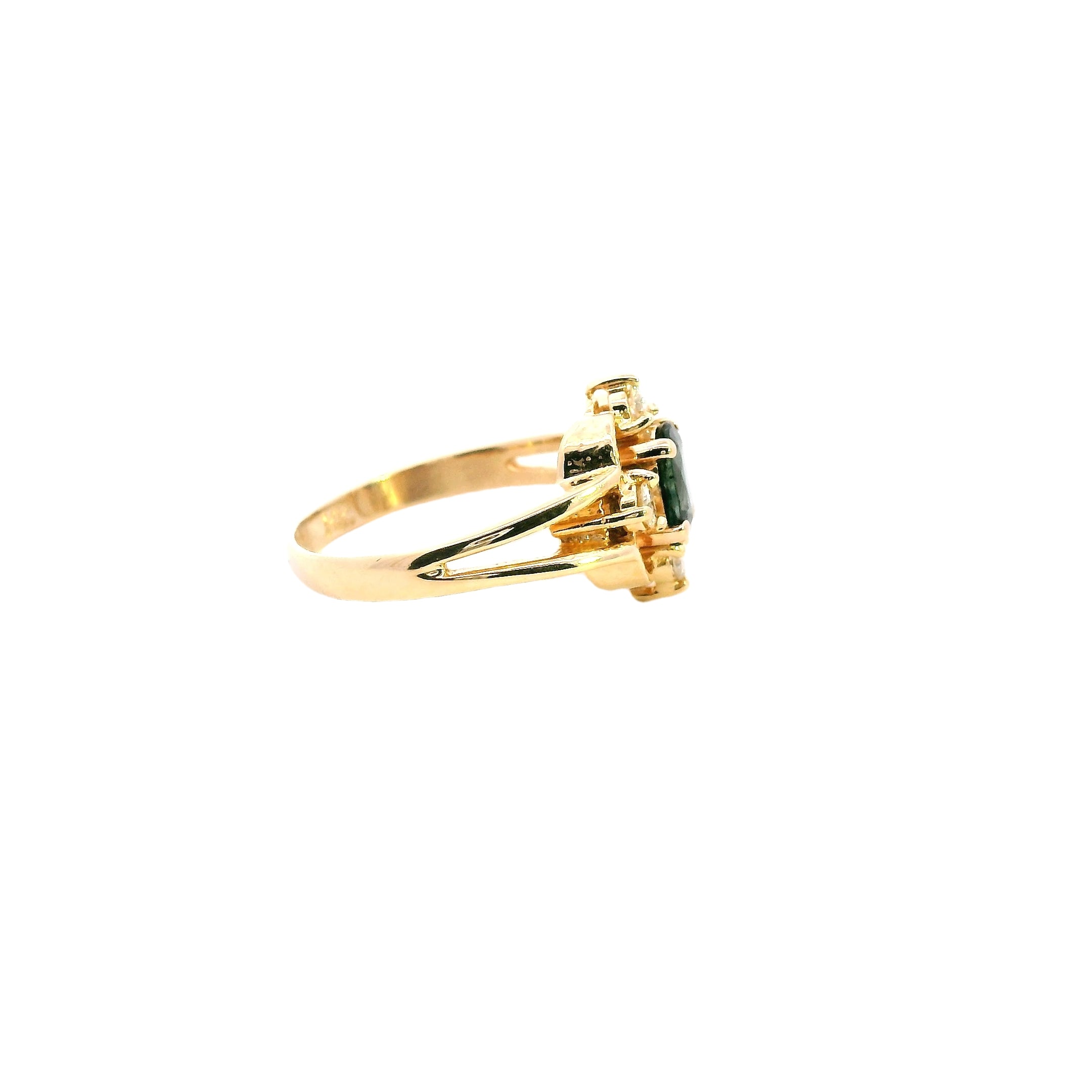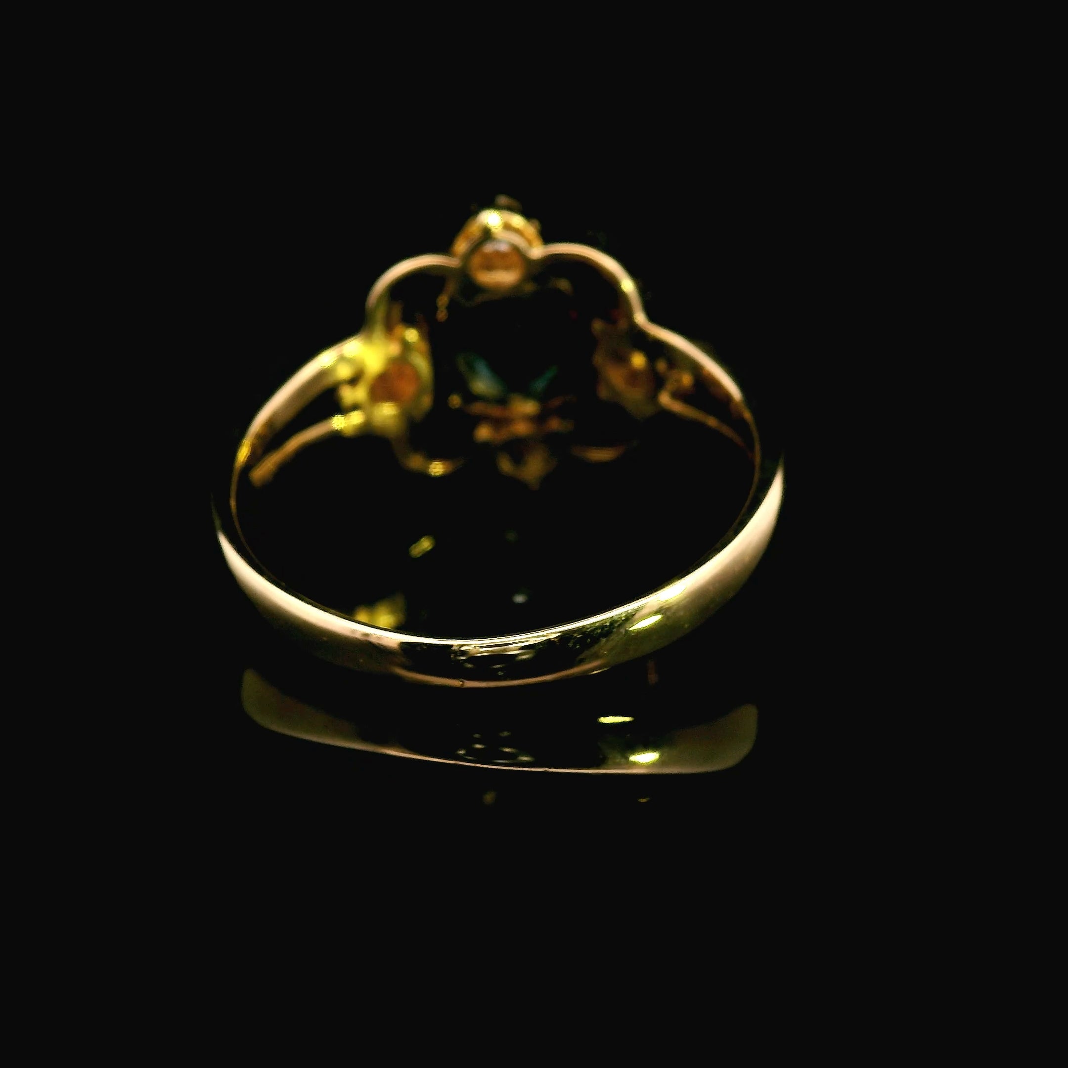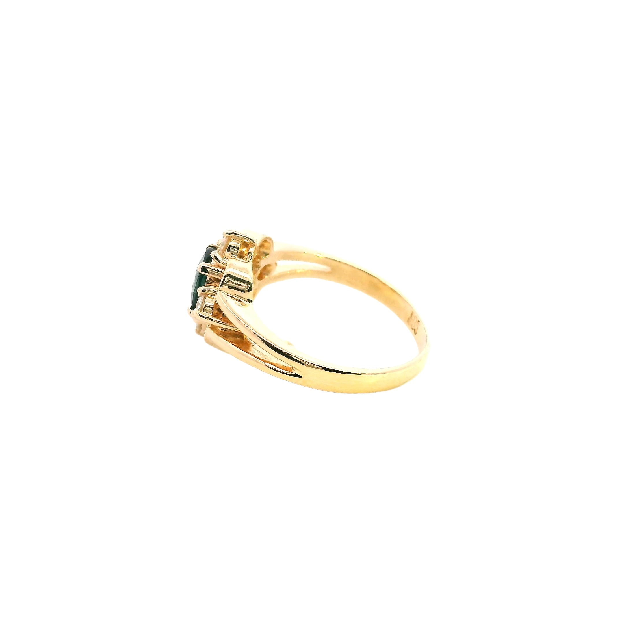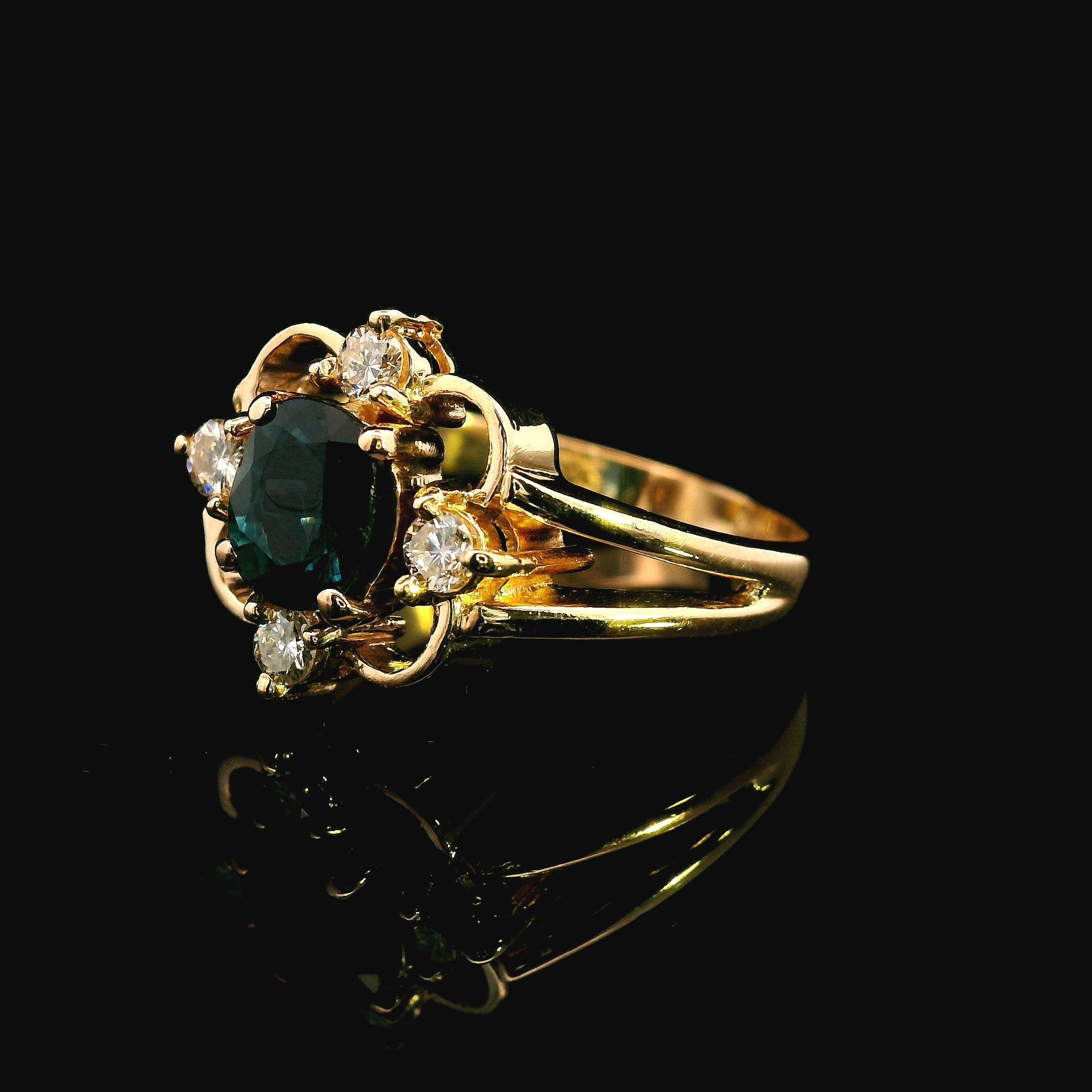 ThisΒ stunning 14ct yellow gold Sapphire & Diamond ringΒ is a true classic, featuring aΒ deep greenish-blue oval sapphire, beautifully accented byΒ four sparkling diamonds. Designed with aΒ scalloped wire surround and split shoulders, this elegant ring is perfect for those who appreciateΒ fine craftsmanship and timeless beauty.
