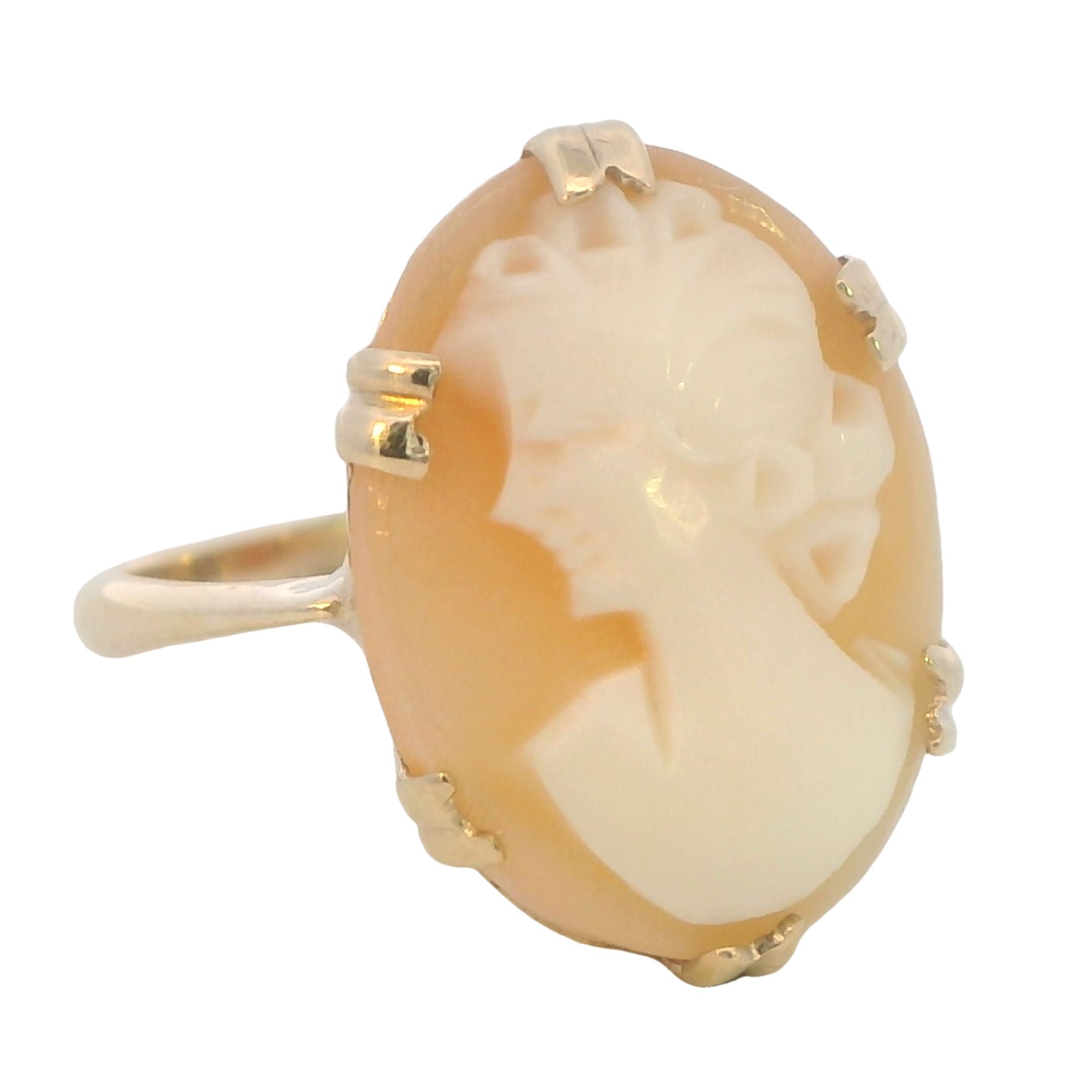 Hand-Carved Shell Cameo Ring in 9ct Yellow Gold – A Vintage Masterpiece