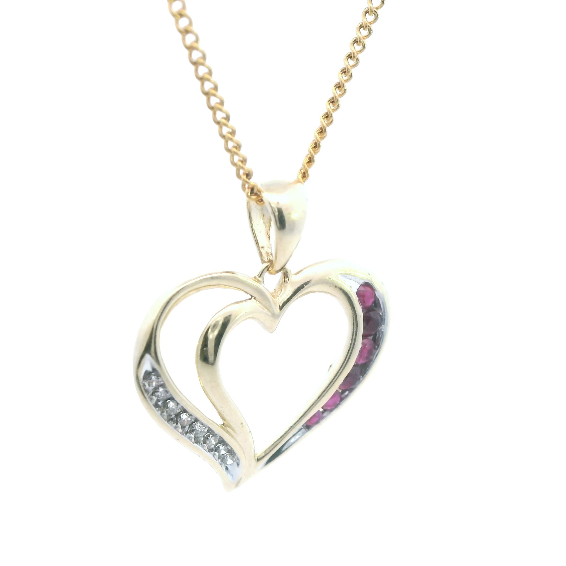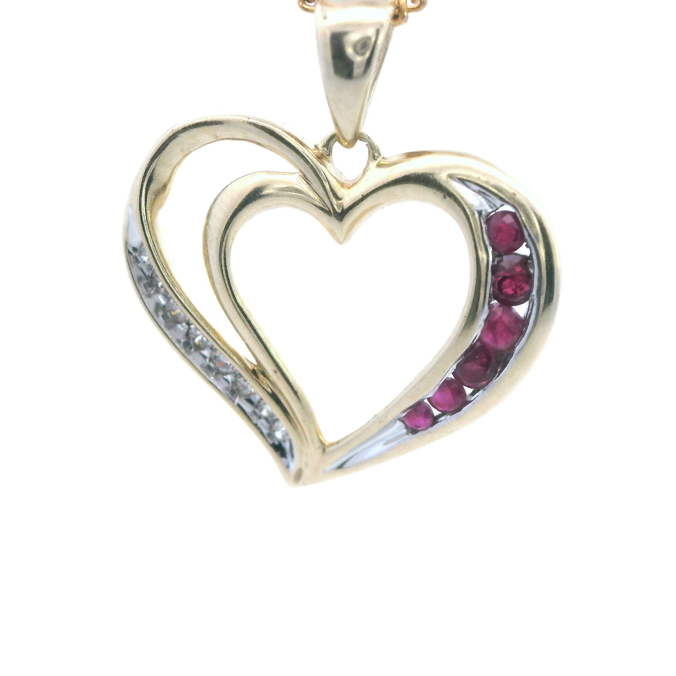 Heart-Shaped Yellow Gold Ruby & Diamond Pendant – A Symbol of Love