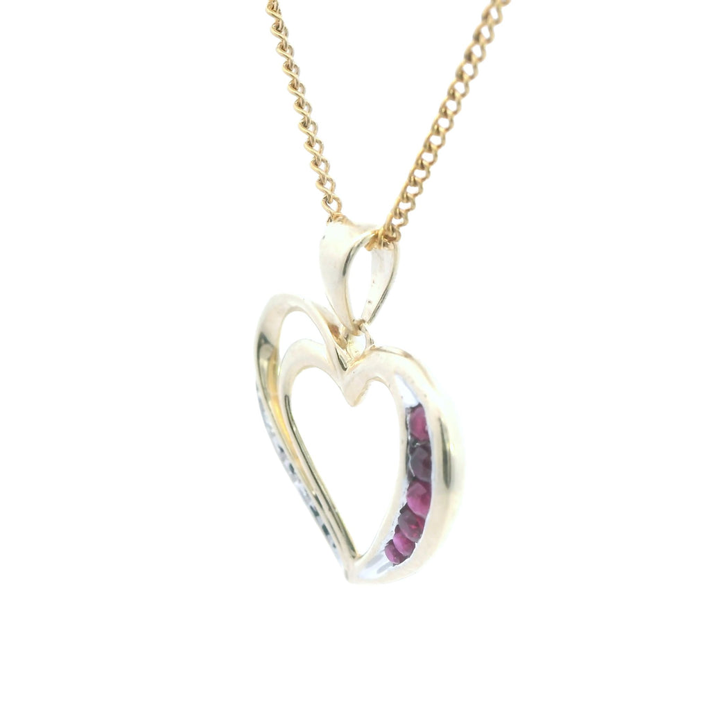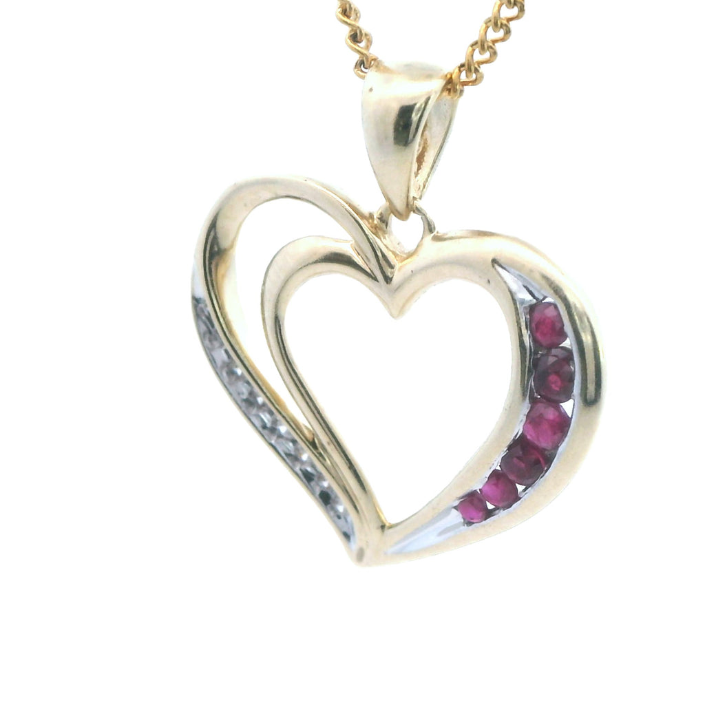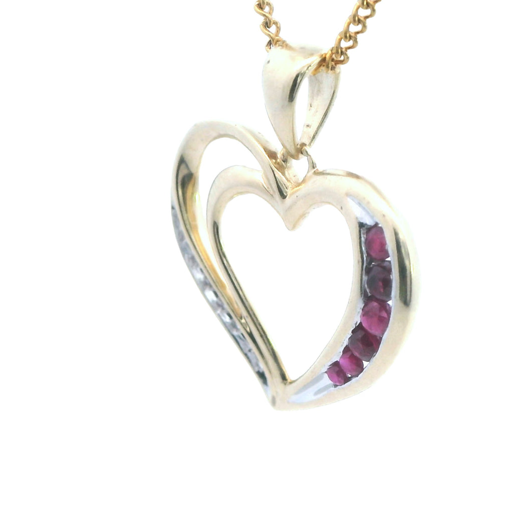This beautiful heart-shaped pendant is not just a piece of jewellery but a symbol of love and affection. Featuring six natural rubies, each with a deep red hue, and sparkling diamonds for a touch of brilliance, this pendant is the perfect gift for a loved one or a special treat for yourself. Whether it's for a birthday, anniversary, or romantic gesture, this pendant will make a lasting impression.
